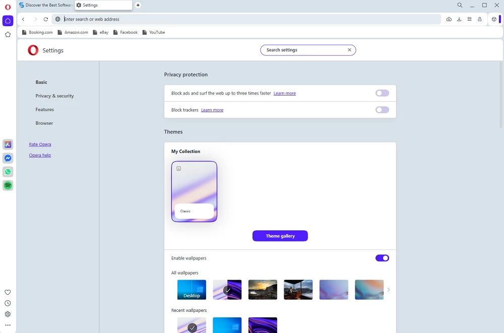 他のウェブブラウザと同様に、Opera は万全のセキュリティと安全性を最優先に考えています。ウェブサイトからのコード侵入を防ぐサンドボックス、煩わしい広告の邪魔を防ぐ広告ブロッカー、そして最も重要な内蔵 VPN 機能など、重要な機能がすべて備わっています。同様に、プライベートブラウジングを他人から守るためのプライベートモードも搭載されています。